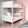 Litera de pino modelo Coral Express (barras) en color Decapé Blanco. Litera compuesta de cabeceros y pieceros con barrotes rectangulares. Incluye lamas de madera que hacen el papel de somier y barra quitamiedos en ambos lados de la cama superior. Escalera de madera ancha incluida, se puede instalar a ambos lados. Litera fabricada en madera de...