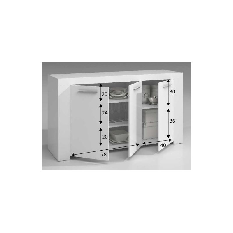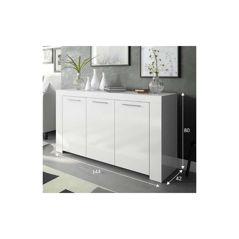Aparador de 3 puertas modelo Lerwick, fabricado en melamina de alta calidad, canteado en PVC. Aparador funcional de lineas rectas, con un diseño moderno.