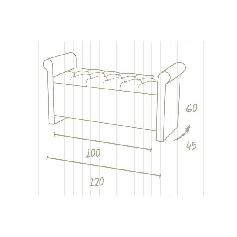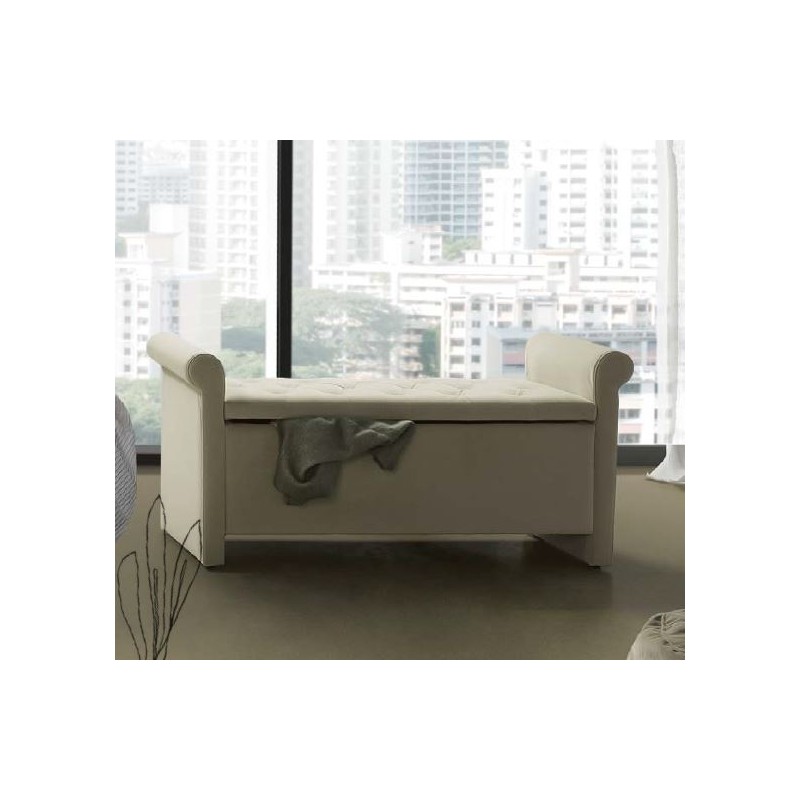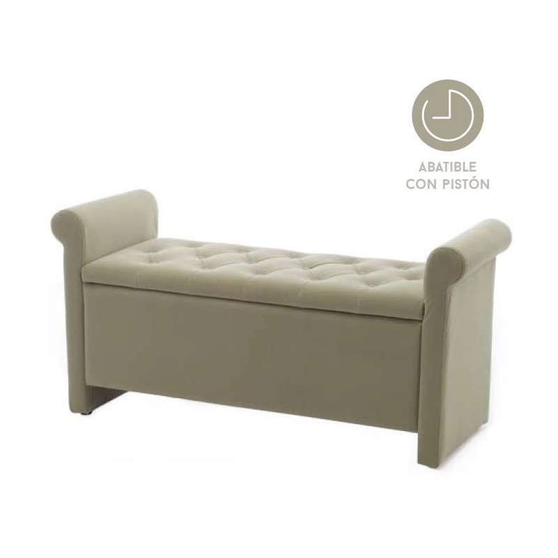 Baúl tapizado con brazos mod. Leia, con tapa a rombos. Tapa abatible con pistón. Brazos curvos al estilo Chester.