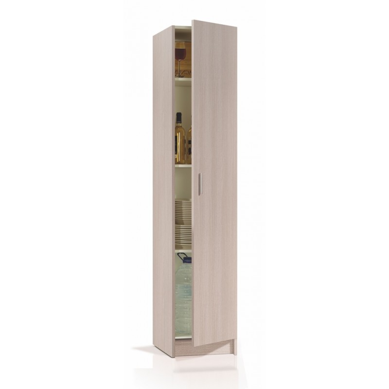 Armario multiusos de una puerta mod. Lans, acabado en melamina de alta calidad, cantos en PVC. Interior con 4 espacios, divididos por estantes. Color Roble.