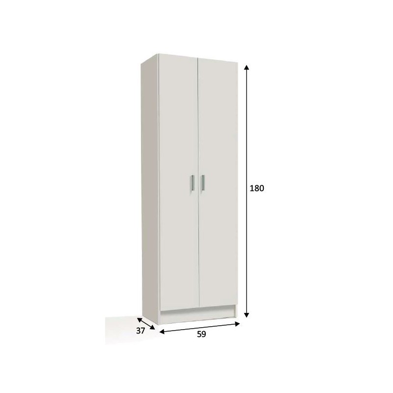 Armario multiusos de 2 puertas mod. Lans, acabado en melamina de alta calidad, cantos en PVC. Interior con 4 espacios, divididos por estantes. Color Blanco.