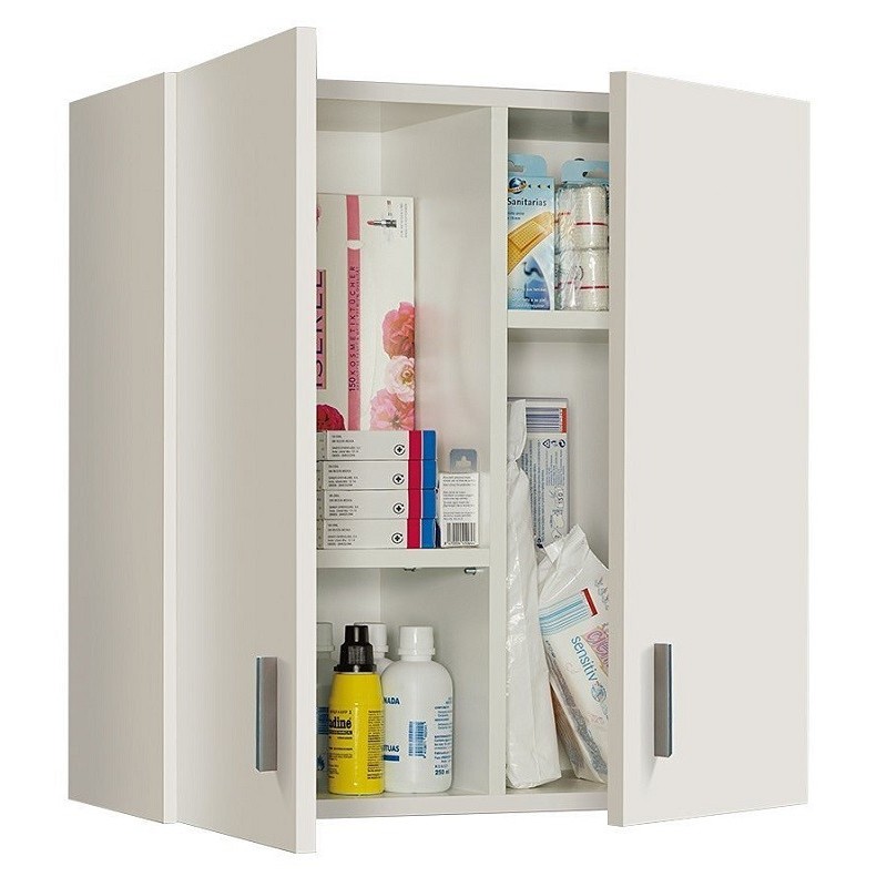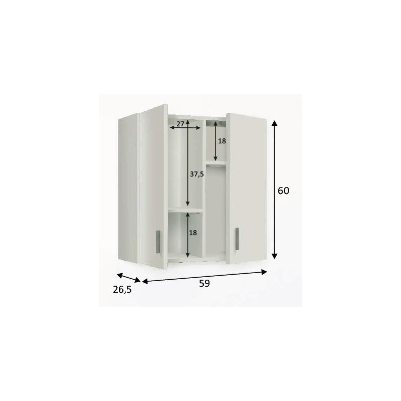 Armario multiusos para colgar de 2 puertas mod. Lans, acabado en melamina de alta calidad, cantos en PVC. Interior con 4 espacios. Color Blanco.