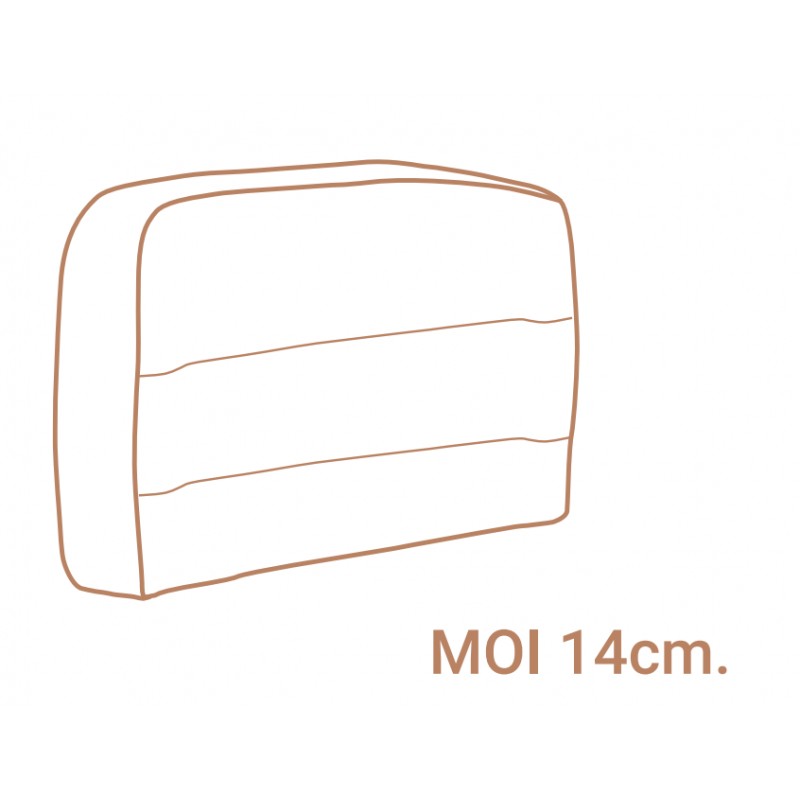 Brazo mod. Moixent de 14 cm. de grosor para sofá del programa "sofás a medida", armazón de madera recubierto de espuma y fibra de poliéster de 300 gr. Este brazo presenta unas costuras decorativas en el lateral que lo hacen diferente del resto de opciones.