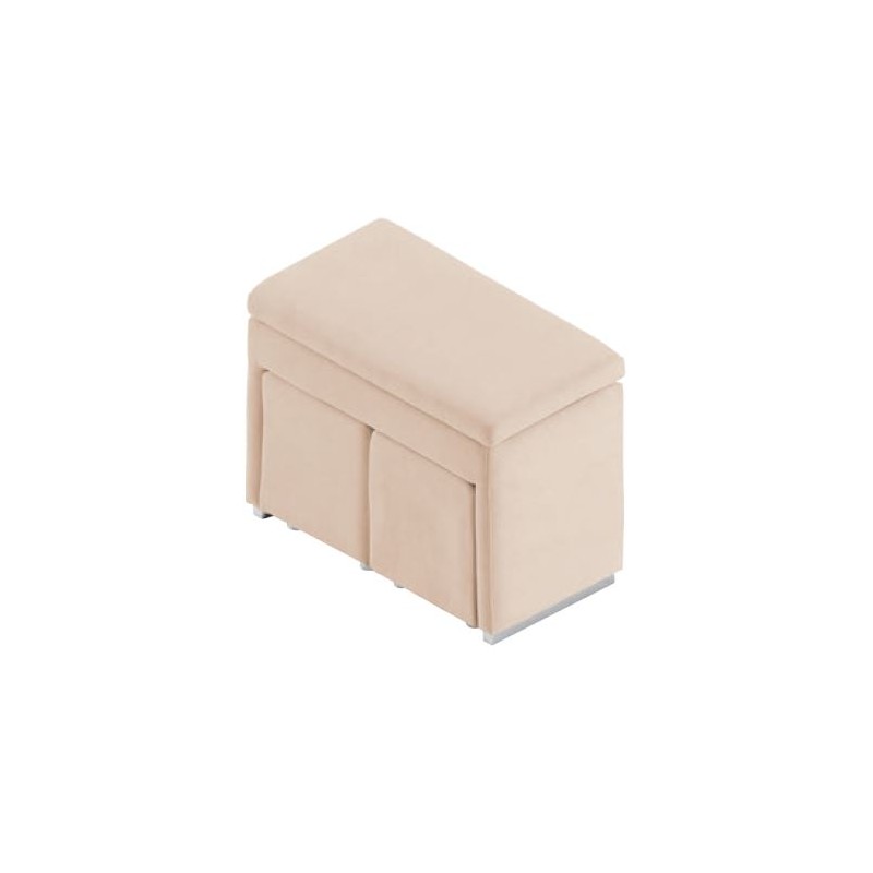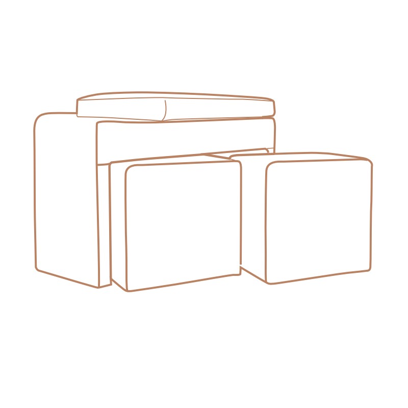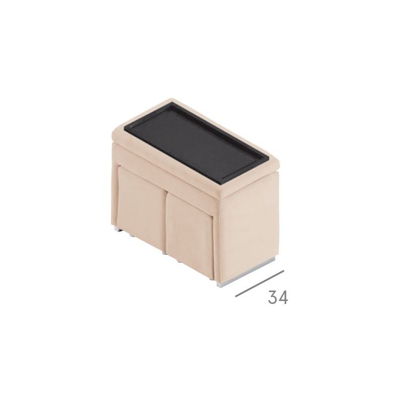 Brazo mod. Parole de 34 cm. de grosor para sofá del programa "sofás a medida". La parte superior del brazo es una tapa giratoria que sirve de bandeja. Además, este brazo incorpora 2 puffs extraibles en el lateral exterior del brazo, los puffs llevan patas de plástico (color plata o negro, a elegir).
