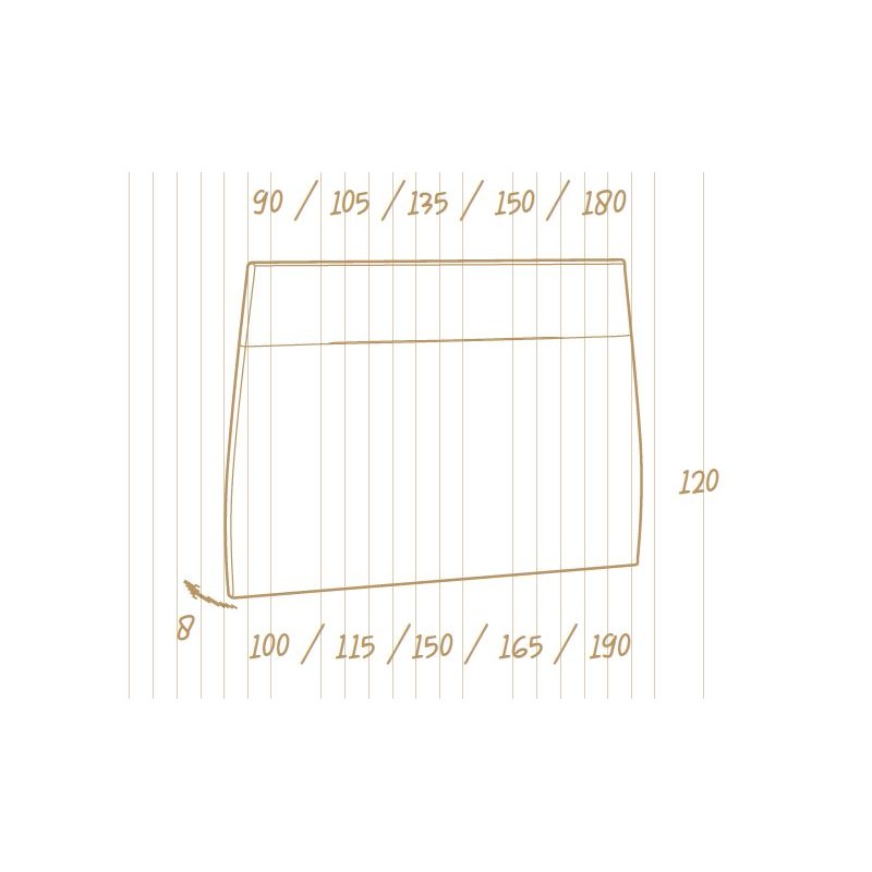 Medidas aprox. | Cama de 90 (100x120 cm. de alto). Cama de 105 (115x120 cm. de alto). Cama de 135 (150x120 cm. de alto). Cama de 150 (165x120 cm. de alto). Cama de 180 (190x120 cm. de alto). |