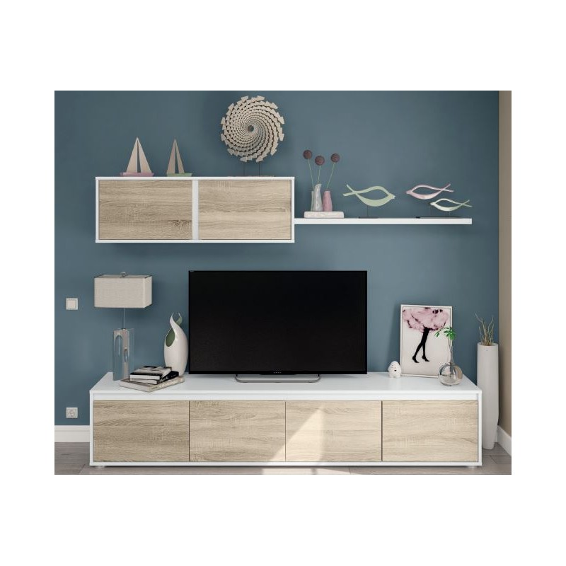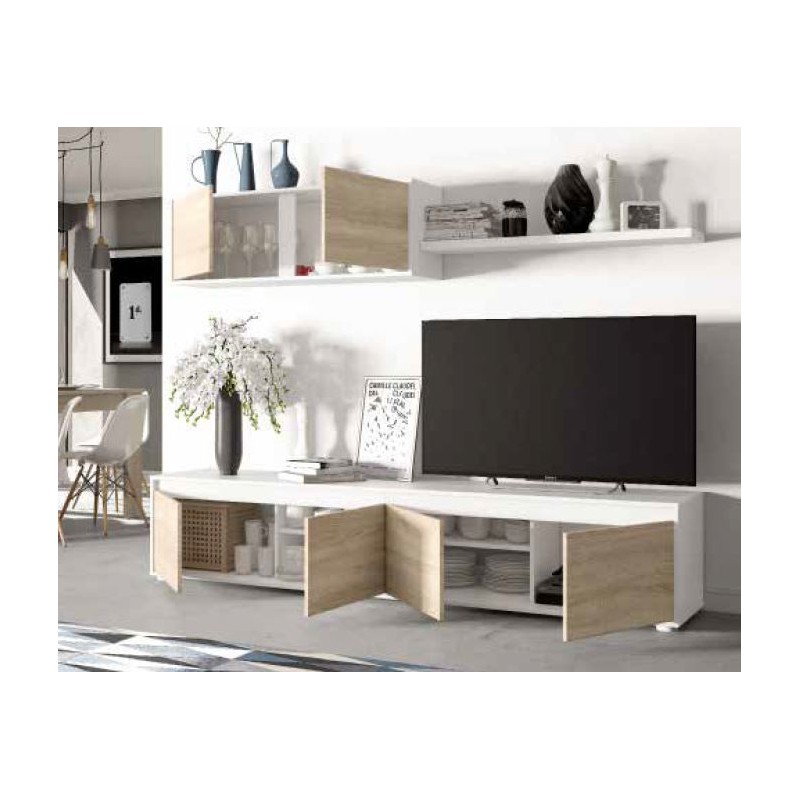 Composición compuesta por: módulo de TV con 4 puertas, módulo superior con 2 puertas y un estante.
