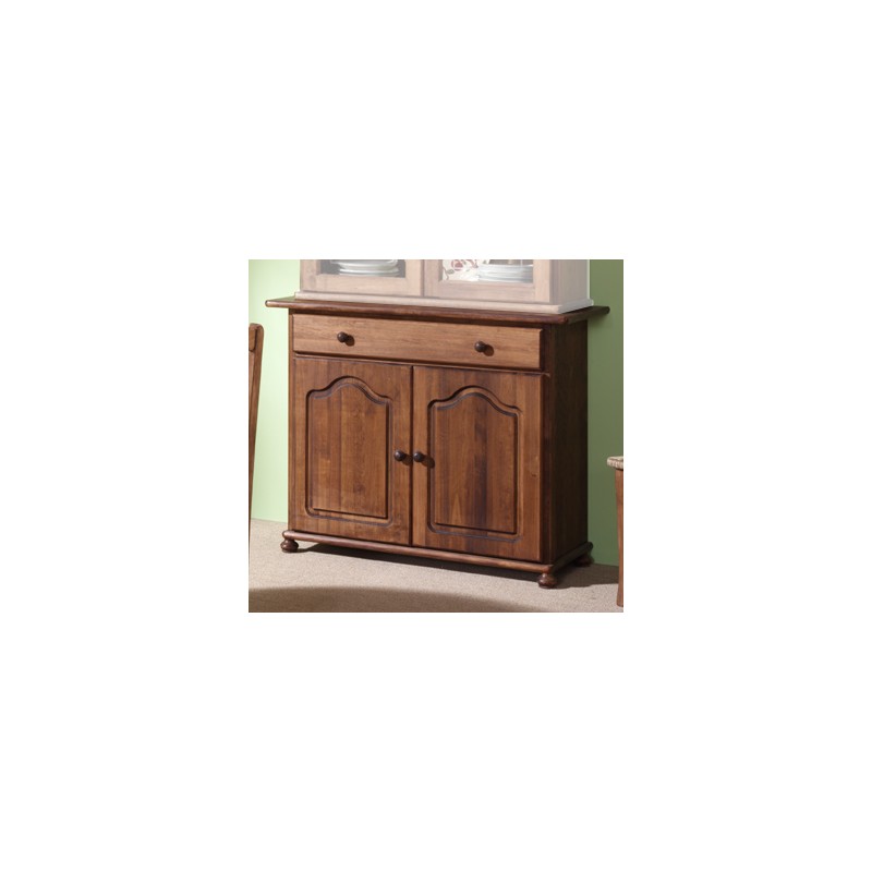 Aparador con 2 puertas y 1 cajón, fabricado en madera de pino macizo. El aparador incluye un estante por cada puerta.
