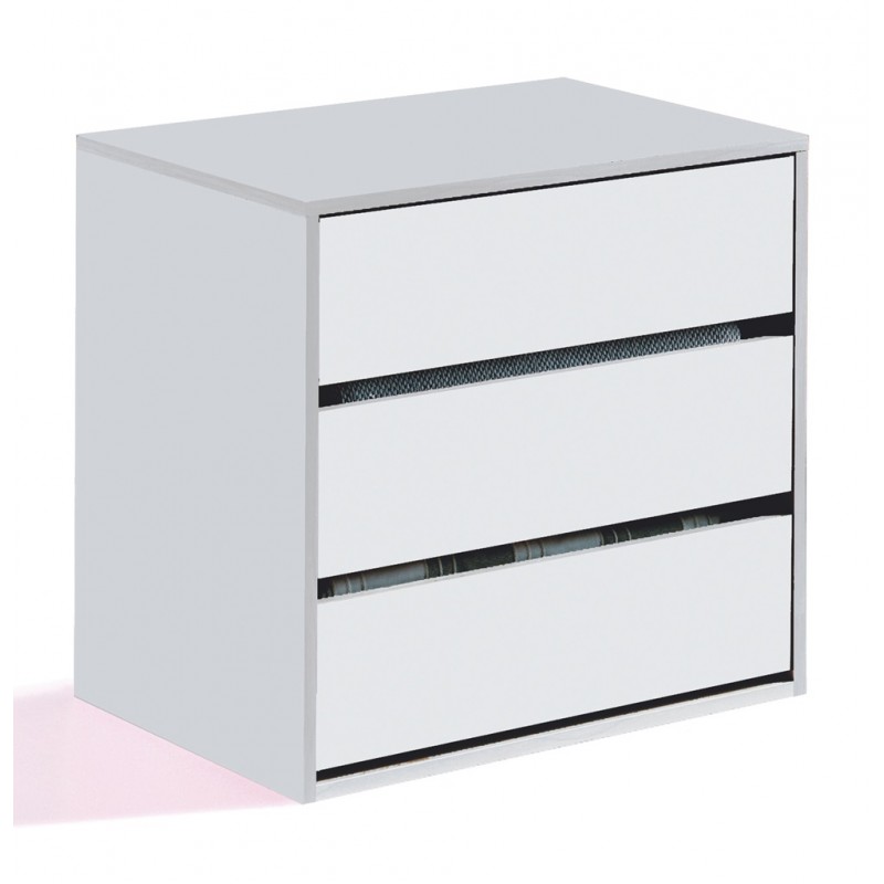 Cajonera con 3 cajones mod. Ennis, acabado en melamina de alta calidad, cantos en PVC. Ideal como complemento para el armario de 2 puertas mod. Ennis. Color Blanco.
