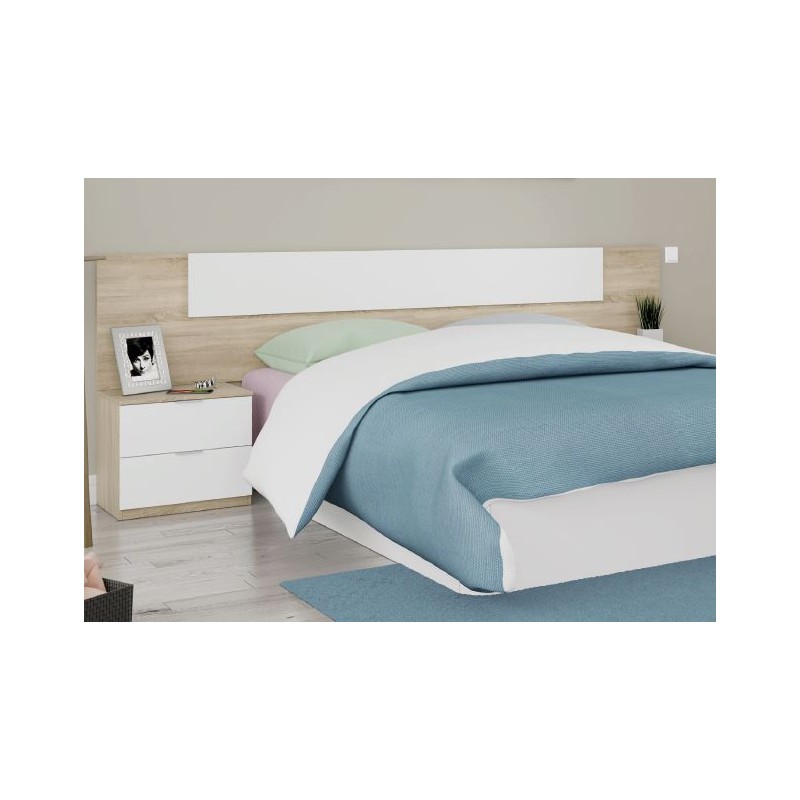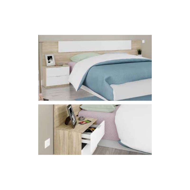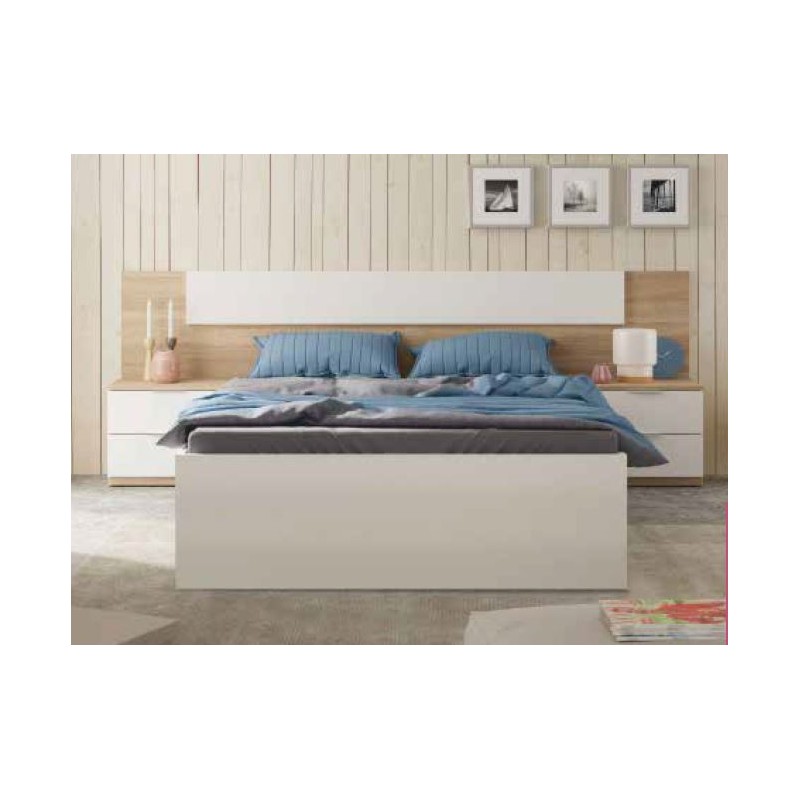Dormitorio de matrimonio mod. Bray acabado en melamina de alta calidad, cantos en PVC. Color Roble Canadian combinado con Blanco Artik, compuesto por: