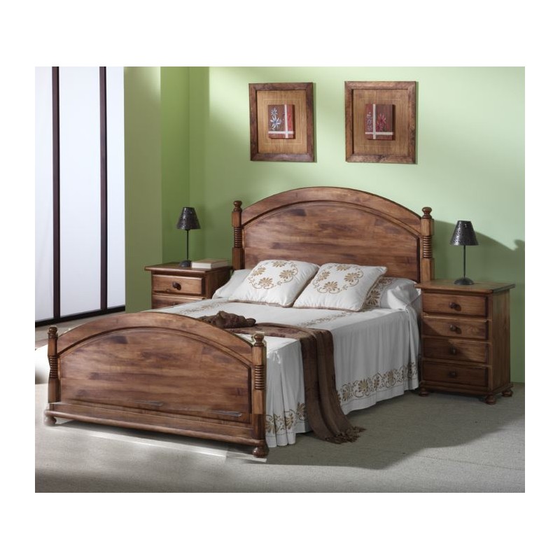 Cama provenzal modelo Venecia, compuesta de cabecero, largeros y piecero. Incluye lamas de madera que hacen el papel de somier. Fabricado en madera de pino macizo. Cama de 90, 105, 135 y150 y largos de 180 y 190. Ideal para dormitorio juvenil o de matrimonio.