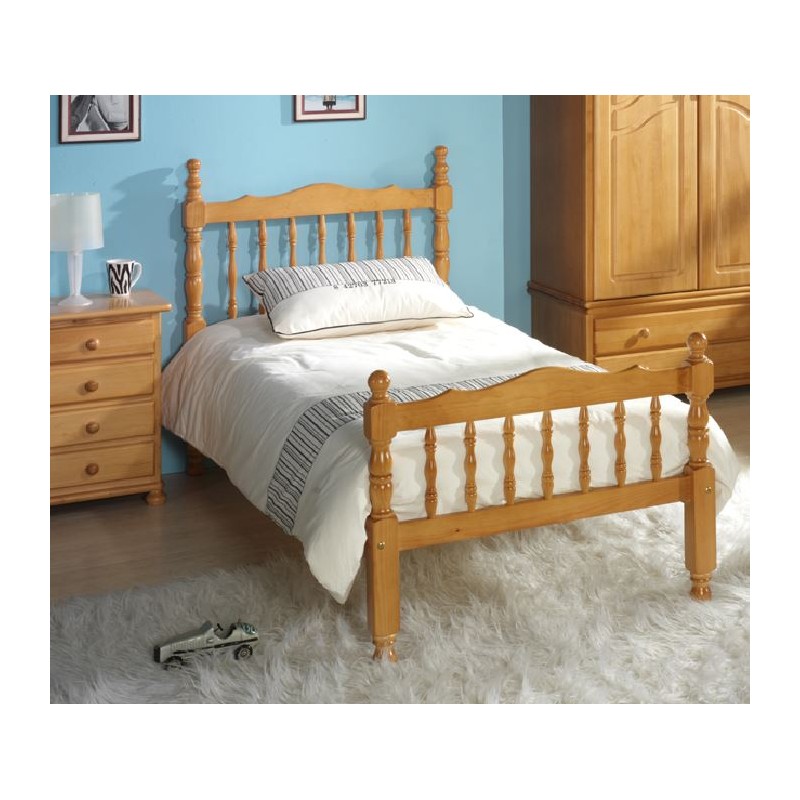 Cama provenzal modelo Torneado Alto, compuesta de cabecero, largeros y piecero. Incluye lamas de madera que hacen el papel de somier. Fabricado en madera de pino macizo. Cama de 80, 90, 105 ó 135 y largos de 180 y 190. Ideal para dormitorio juvenil o de matrimonio.