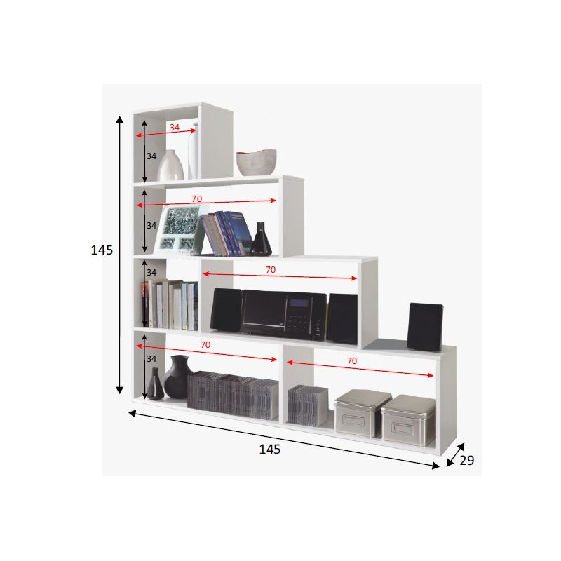 Medidas estanteria: 145 frente x 29 fondo x 145 cm. de alto.
