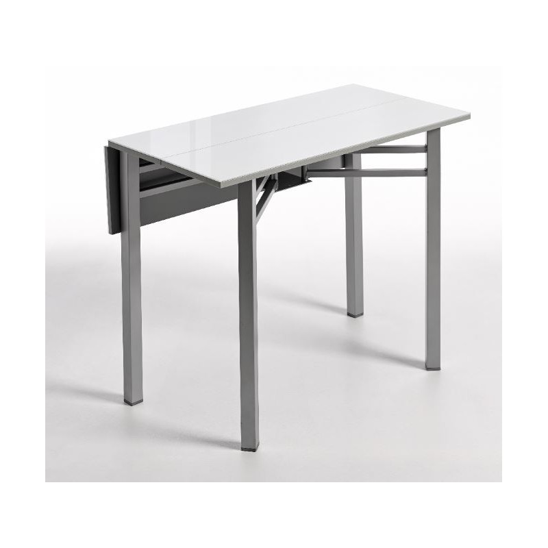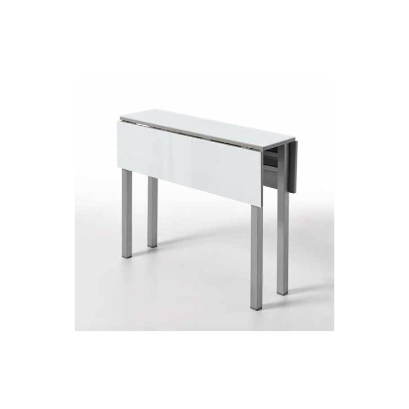 La mesa consola extensible Pontevedra es ideal para maximizar el uso de espacios pequeños. Su diseño práctico permite extender ambos lados mediante un sistema de deslizamiento y elevación independiente, perfecto para adaptarse a cada necesidad. La tapa va acabada en cristal pegado sobre tablero de DM. Cantos en pvc. Las patas y el chasis son metálicos color plata.