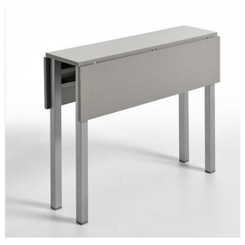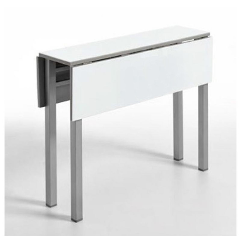 La mesa consola extensible Pontevedra es ideal para optimizar espacios reducidos con un diseño práctico y elegante. Extensible a los dos lados mediante deslizamiento de las patas y elevación de las alas. Podemos elevar cada lado independientemente, ajustándola así siempre a las necesidades del momento. La tapa está fabricada en DM laminado, con bordes en PVC, y estructura metálica en color plata.