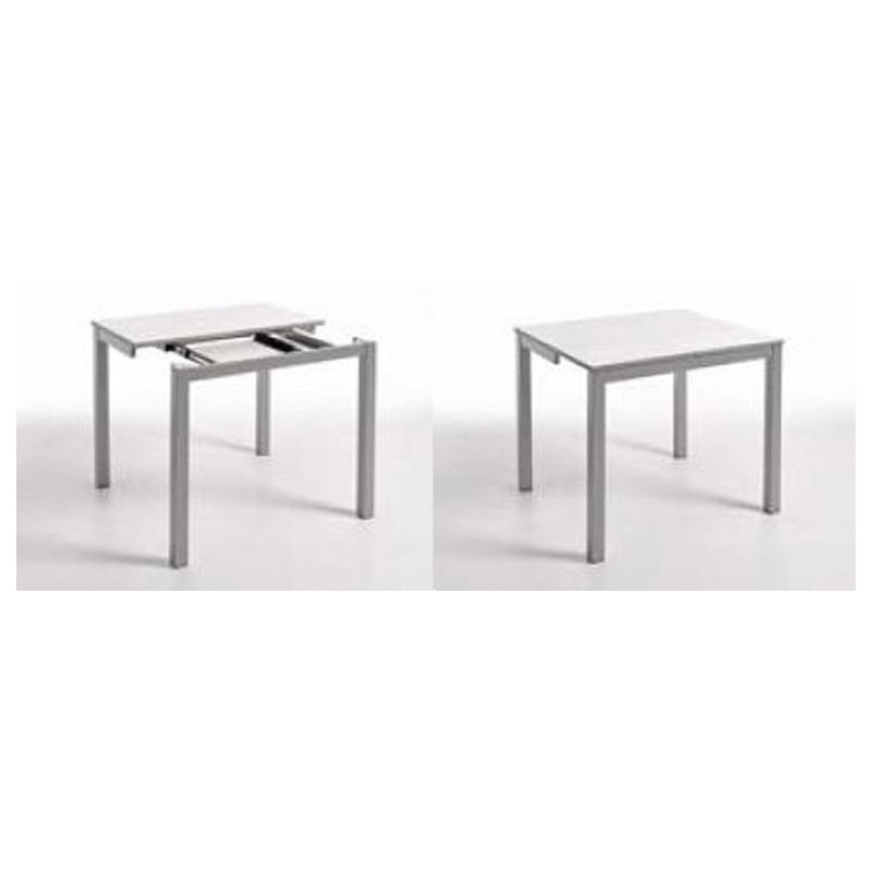 La mesa de cocina Daimiel es una opción moderna y práctica, extensible a lo ancho para aprovechar al máximo el espacio. Su diseño incluye un sistema de guías que permite deslizar las patas hacia adelante y agregar el extensible, perfectamente integrado en el mismo color que la encimera laminada. Patas metálicas en plata o blanco. Esta mesa es ideal para adaptarse a cualquier estilo de cocina.