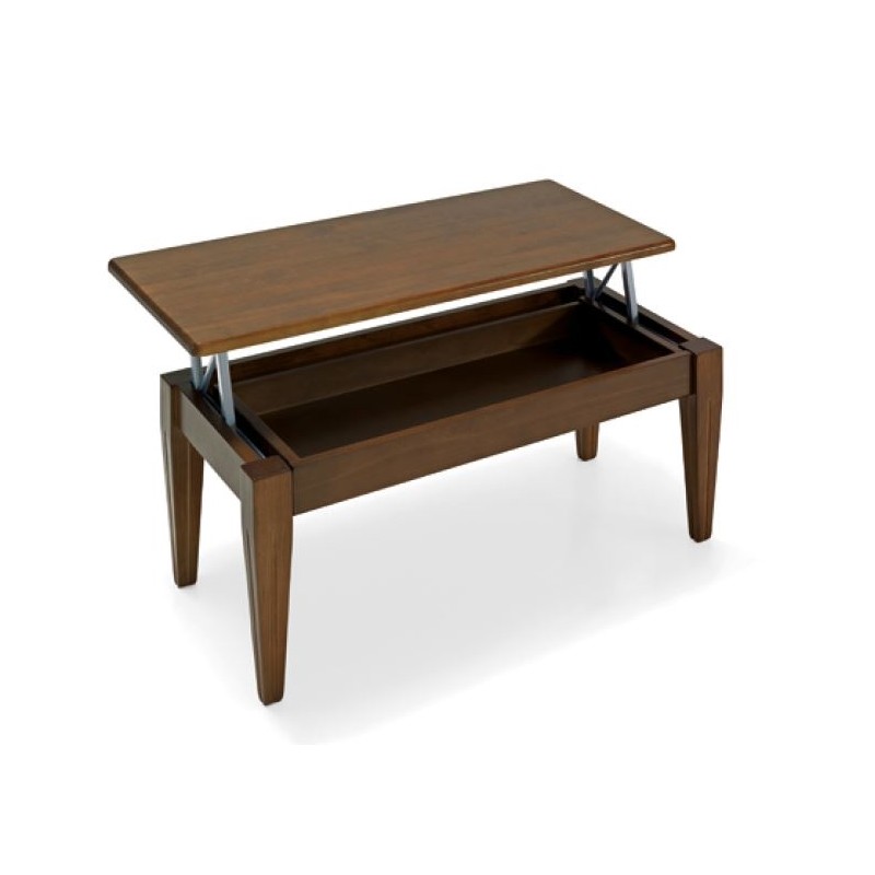 Mesa de centro elevable modelo N3 con bandeja interior, fabricada en madera de pino maciza, tapa de madera.