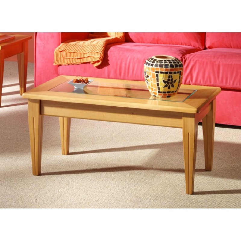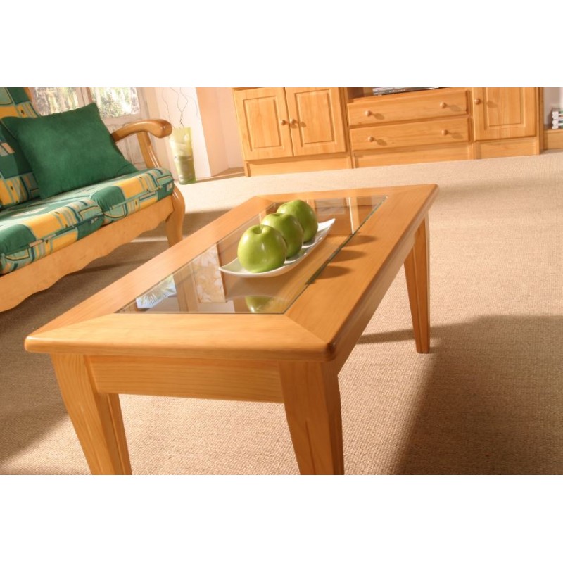 Mesa de centro modelo N3 con cajón, fabricada en madera de pino maciza, tapa de cristal (disponible mismo modelo con toda la tapa de madera).