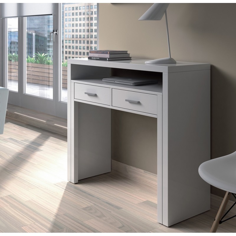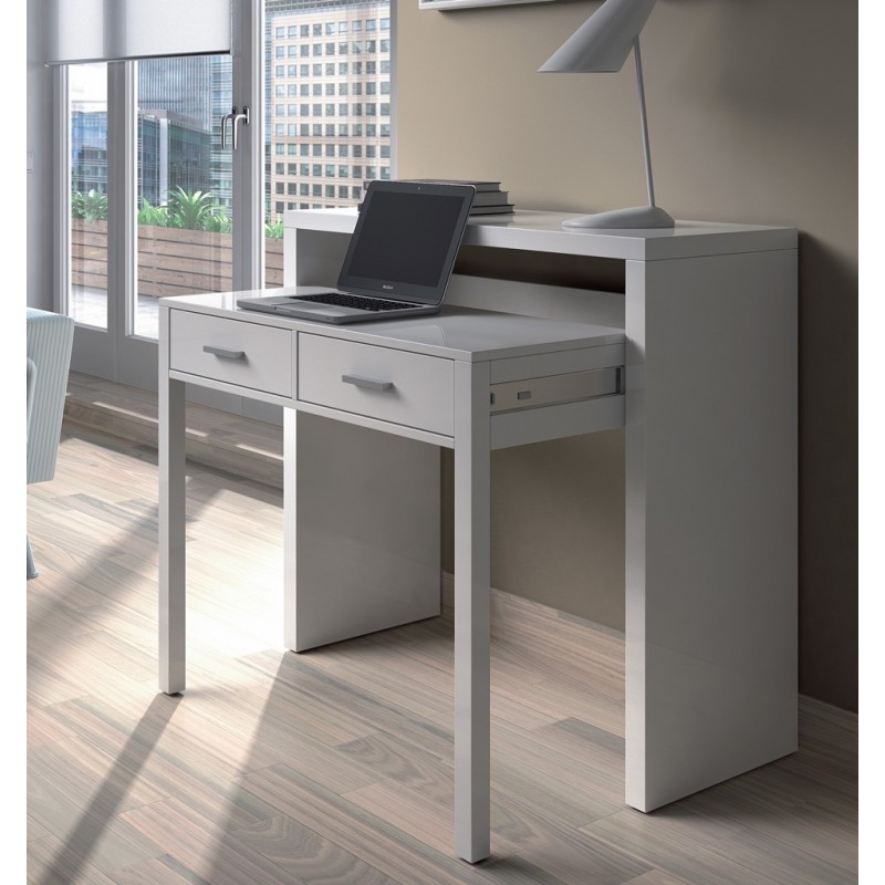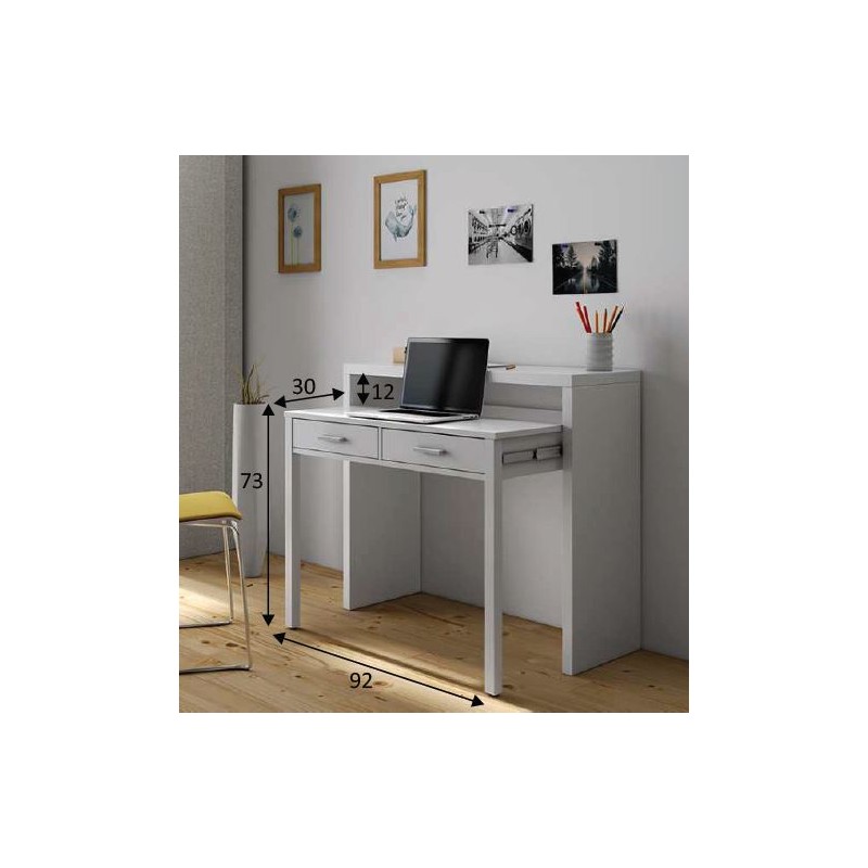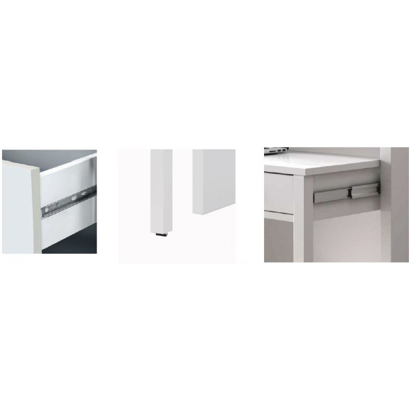 Escritorio con bandeja deslizante mod. Will, acabado en melamina de alta calidad, cantos en PVC. Color Blanco Artik. Este escritorio dispone de 2 niveles, el nivel inferior es deslizante y cuenta con 2 cajones.