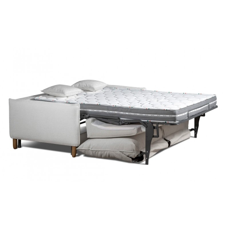 Módulo cama sistema de apertura italiana de 2 plazas con colchón de 120x190 cm. del programa "sofás a medida". Disponible también módulos cama con colchón de: 140x190 cm. y 160x190 cm. El colchón de la cama puede ser de HR, o de viscoelástica con núcleo HR de 35 kg. de densidad (con incremento), ambos con una altura de 16 cm.