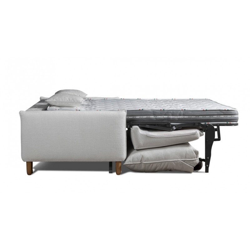 Cama: Sistema de apertura italiana con suspensión de cincha elástica y somier de varilla electrosoldada.