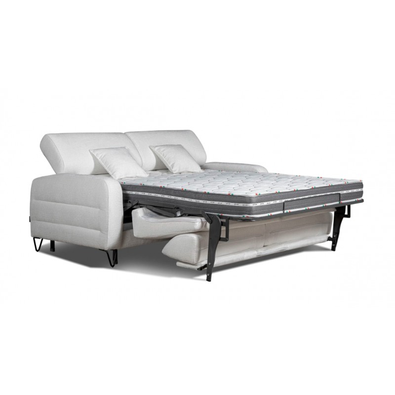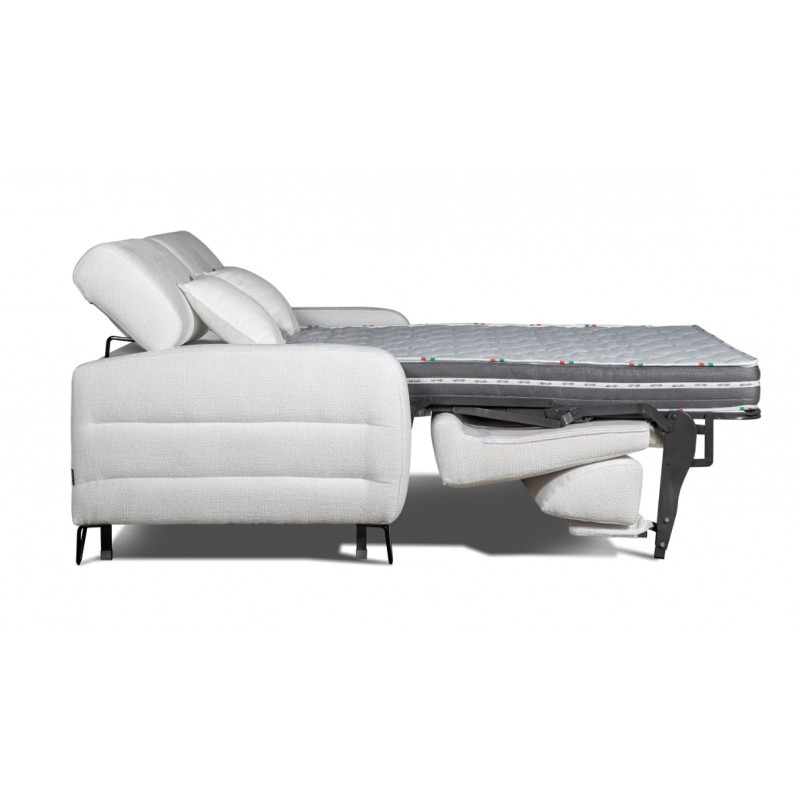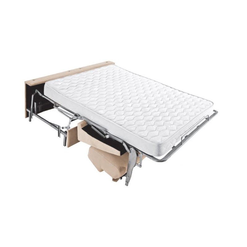 Módulo cama sistema de apertura italiana con colchón de 160x190 cm. del programa "sofás a medida". Disponible también módulos cama con colchón de: 120x190 cm. y 140x190 cm. El colchón de la cama puede ser de HR, o de viscoelástica con núcleo HR de 35 kg. de densidad (con incremento), ambos con una altura de 16 cm.