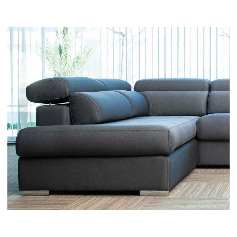 Módulo chaiselongue rincón (sin arcón) del programa "sofás a medida" con respaldo lateral incorporado. Medida de frente con cabezal levantado 103 cm. y con cabezal abatido 110 cm. Todas las rincón chaiselongue llevarán todos sus respaldos iguales, excepto el "Fernando" que por defecto llevará en su lateral el respaldo "Europa" (si no se especifica lo contrario).