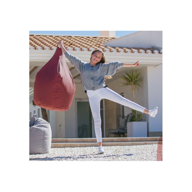 Puff de bolas modelo Pera Mini (pequeño), relleno de poliestireno expandido de alta calidad, tapizado. Dispone de unas válvulas que dejan salir el aire cuando te sientas en él, dándole una máxima comodidad. Doble cremallera. Doble cosido. Disponible en varias medidas.