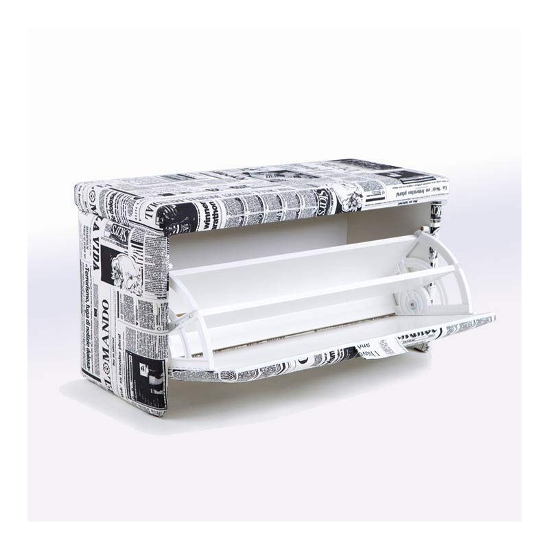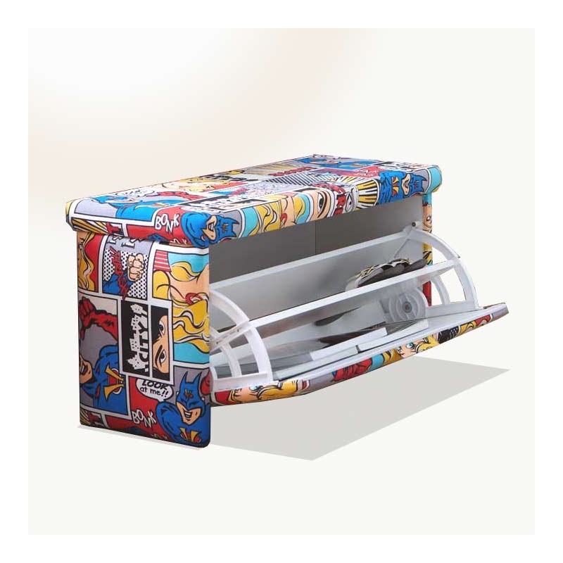 Puff zapatero mod. Z6N con una puerta y capacidad para 6 pares de zapatos. Totalmente tapizado, sirve como asiento y contenedor de calzado. Permite su tapizado en toda la gama de telas del catálogo. Es ideal para poner a los pies de la cama o en el vestidor.
