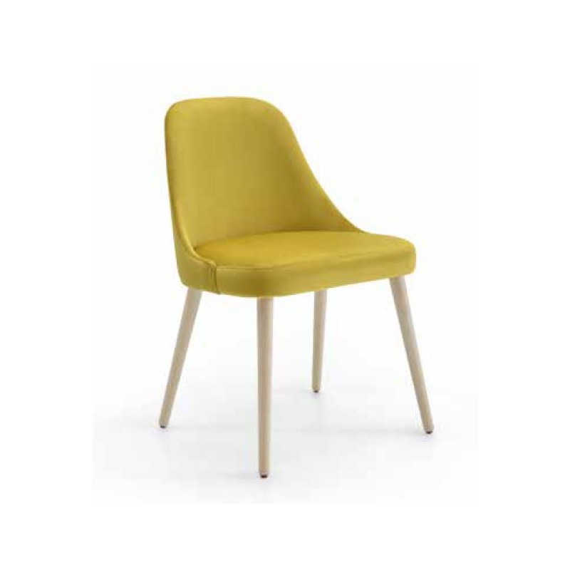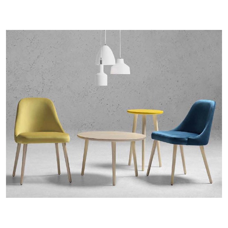Butaca tapizada modelo J201, patas fabricadas en madera de pino macizo, con asiento y respado tapizados sobre tablero de partículas.
