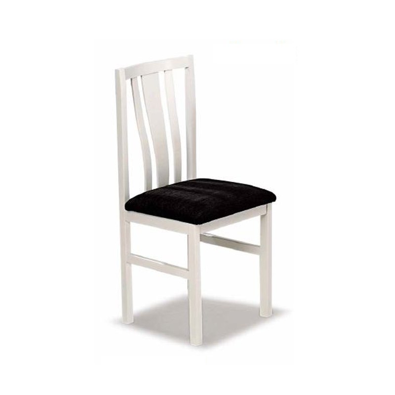 Silla modelo M858 fabricada en madera de haya con respaldo en haya y asiento tapizado sobre tablero de partículas.