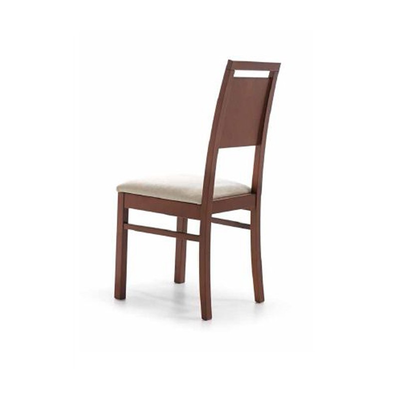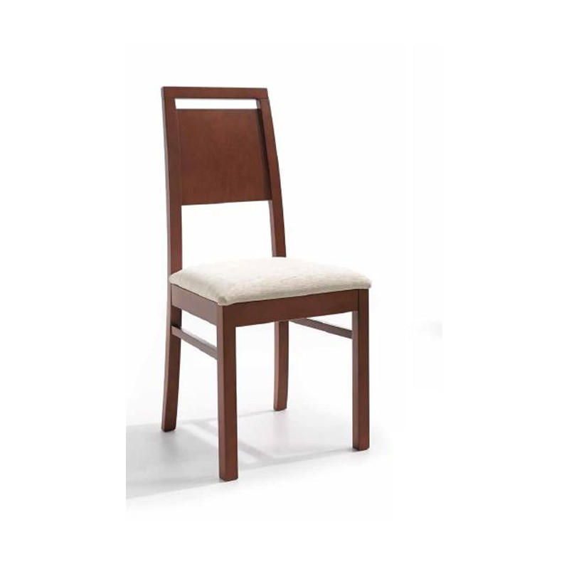 Silla modelo M800 fabricada en madera de haya con respaldo contrachapado en haya y asiento tapizado sobre tablero de partículas.