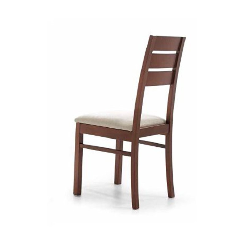Silla modelo M803 fabricada en madera de haya con respaldo contrachapado en haya y asiento tapizado sobre tablero de partículas.