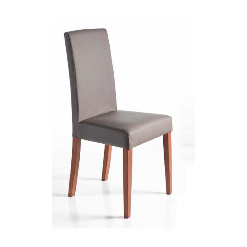 Silla modelo M562 fabricada en madera de haya con respaldo totalmente tapizado y asiento tapizado sobre tablero de partículas.