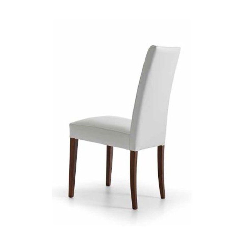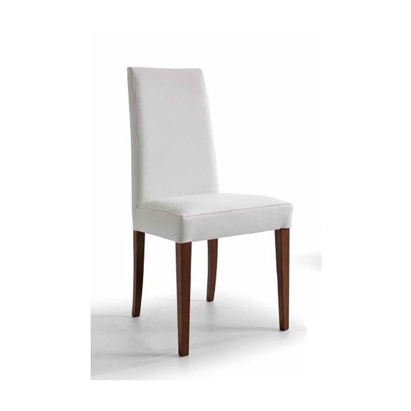 Silla modelo M566 fabricada en madera de haya con respaldo totalmente tapizado y asiento tapizado sobre tablero de partículas.