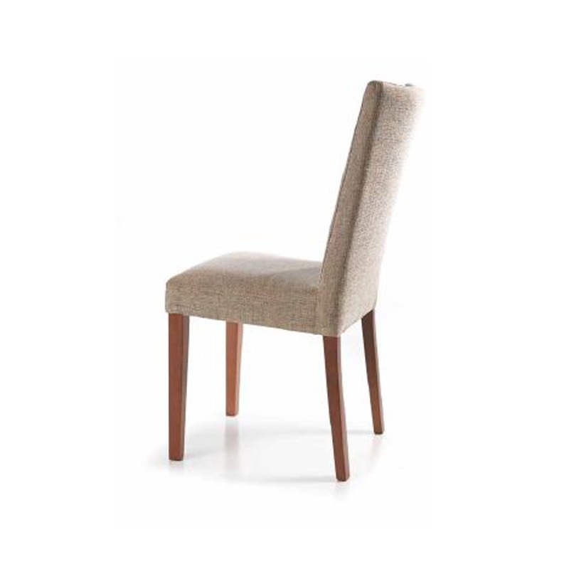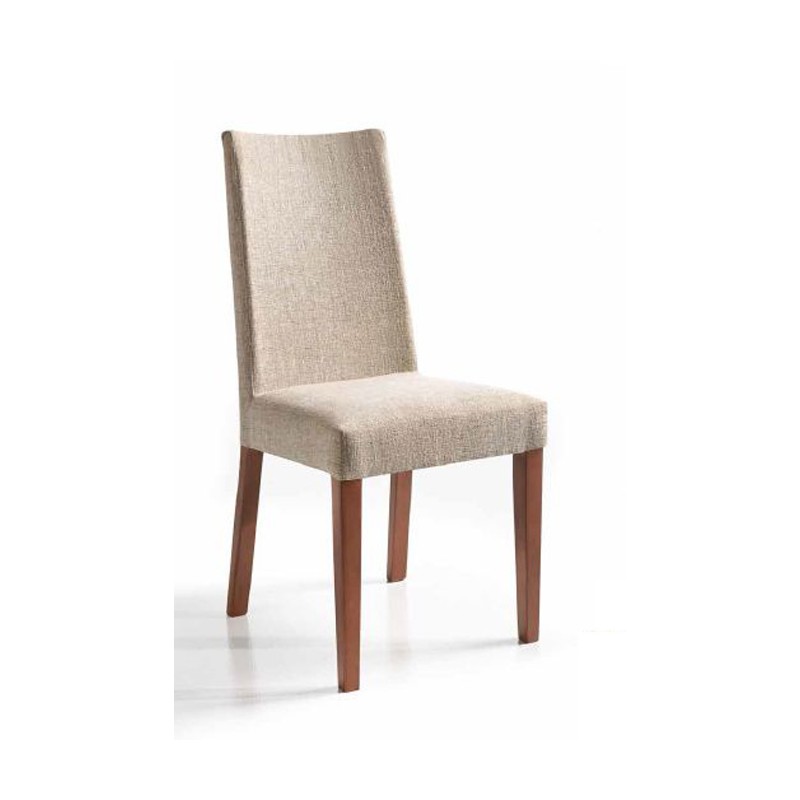Silla modelo M568 fabricada en madera de haya con respaldo totalmente tapizado y asiento tapizado sobre tablero de partículas.