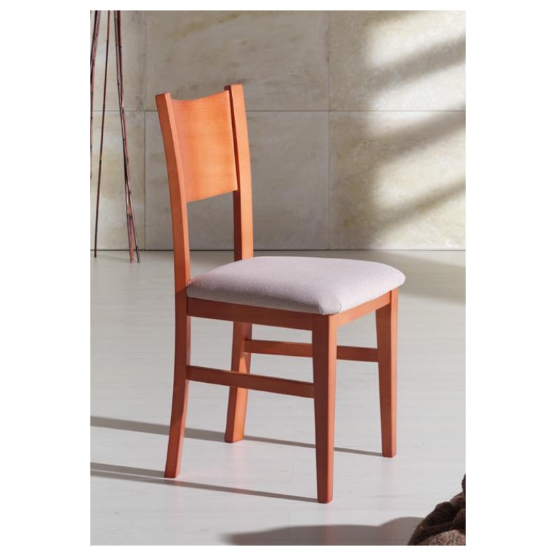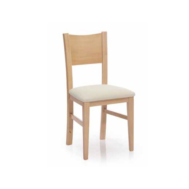 Silla modelo J63, fabricada en madera de haya, con asiento tapizado sobre tablero de partículas.