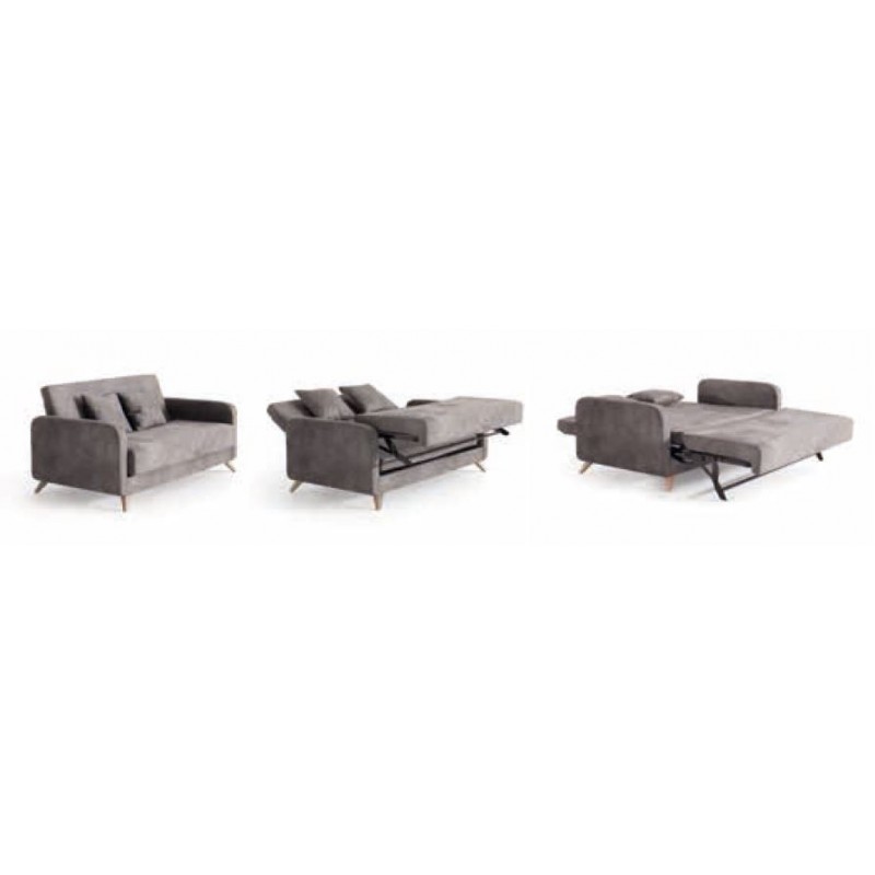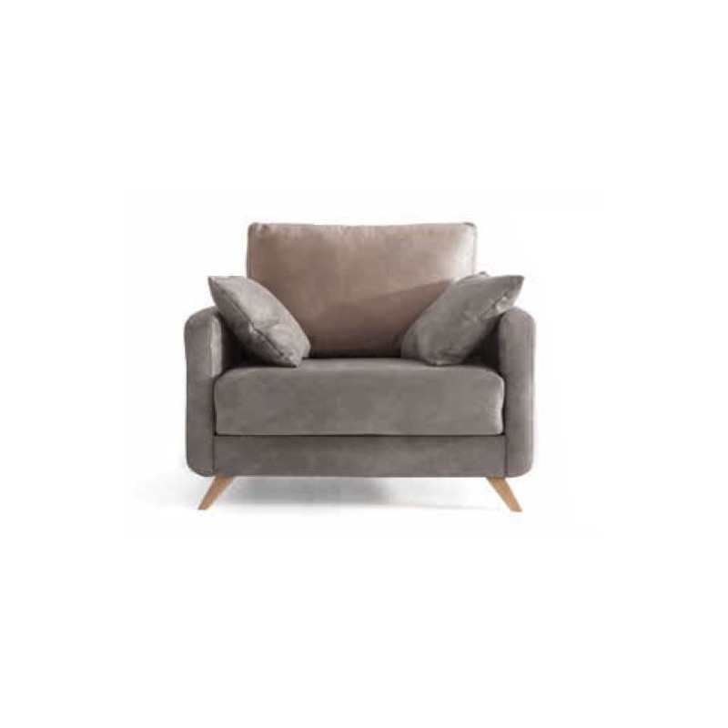 Sillón cama de 1 plaza con un excelente diseño, recogido, compacto y proporcionado, pero sobre todo diferente a lo habitual. Presenta unos brazos rectos que lo hacen un sillón estrecho, siendo ideal para espacios reducidos. Este sillón es convertible en cama de 85x200 cm. Las patas son de madera, color a elegir.