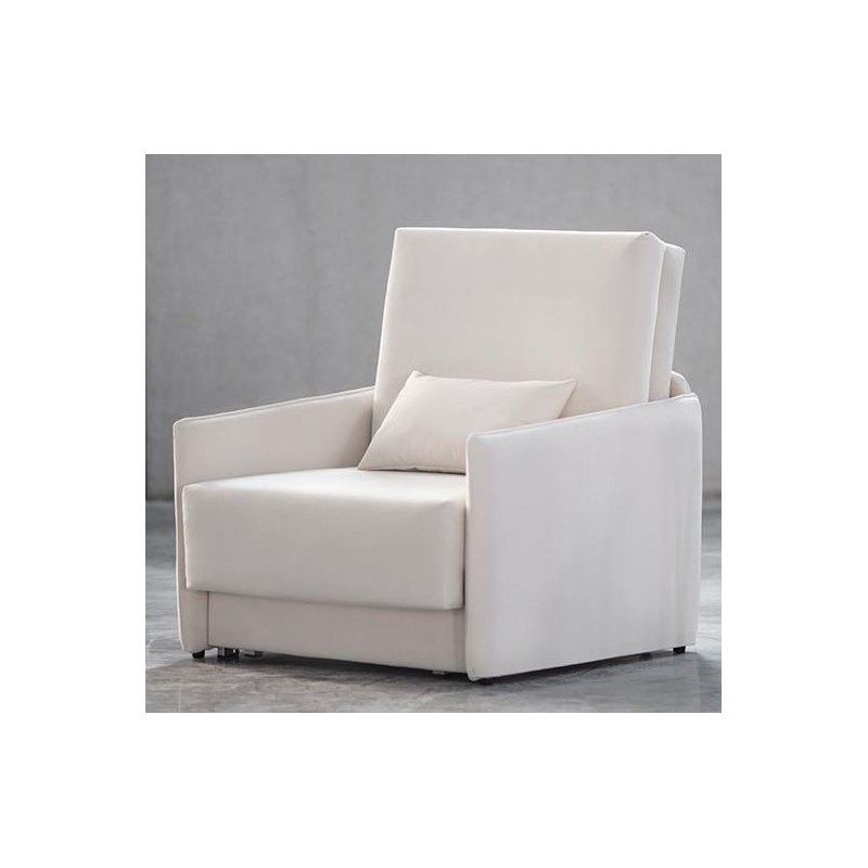 Sillón convertible modelo Tobago-80, con cama de 80x190. Podemos unir varios sillones a la vez, por ejemplo, uniendo dos sillones formaríamos un sofá de 176 cm. con dos camas de 80 para dejarlas unidas o separarlas. Cojín de decoración incluido.
