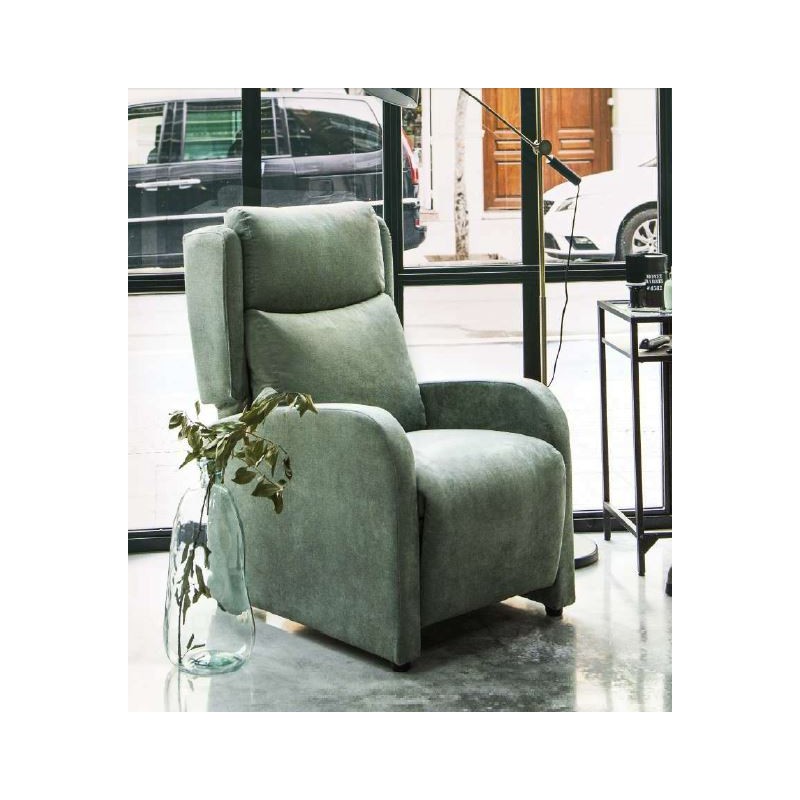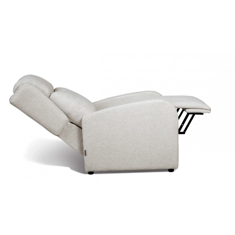 Sillón relax modelo Vega, con apertura manual de empuje (respaldo reclinable y reposapiés elevable).