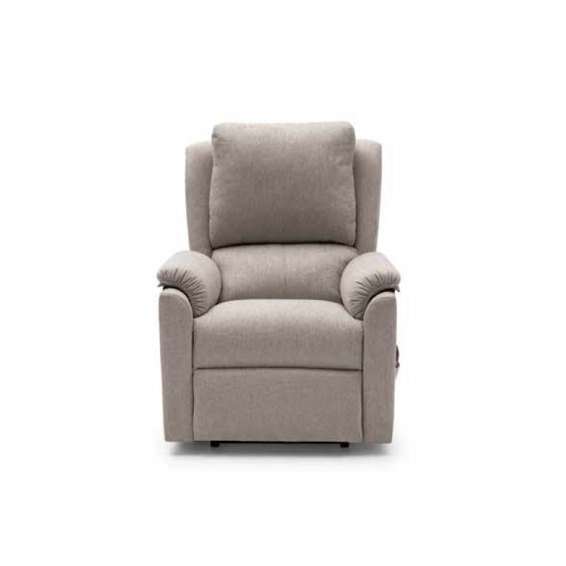 Sillón relax mod. Ródenas (servicio expres). Apertura motorizada (dos motores) y sistema de elevación levanta personas powerlift. La apertura eléctrica se acciona mediante un mando que se puede guardar en el bolsillo lateral del brazo.