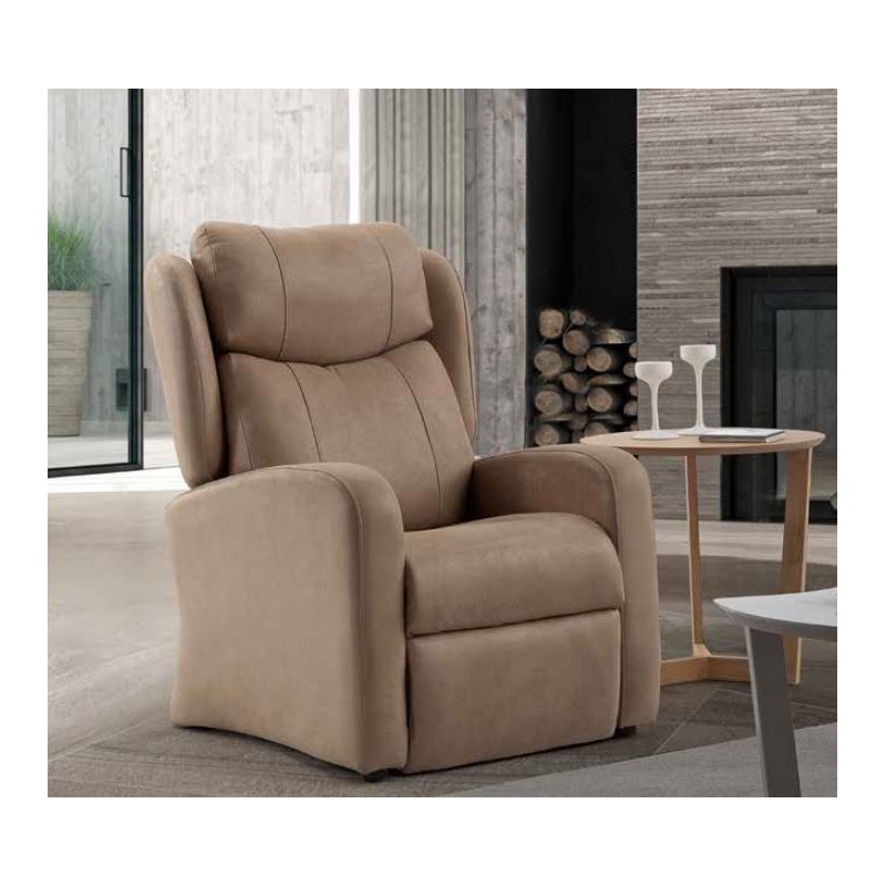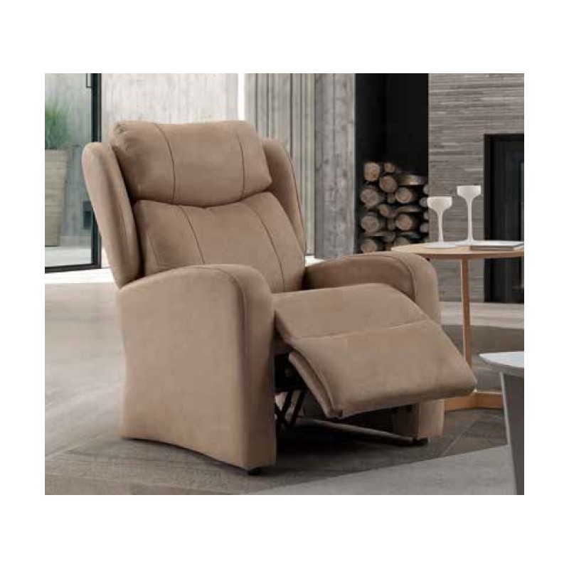 Sillón relax mod. Mary, fabricado con armazón de madera de pino y tablero de partículas recubierto de espuma de poliuretano, mecanismo relax pintado en epoxi negro. Asiento reforzado con chincha elástica de alta resistencia, con espuma de poliuretano 28 kg. recubierto de espuma de 20 kg. super suave. Respaldo desenfundable 100% fibra hueca siliconada de alta recuperación. Patas de PVC.