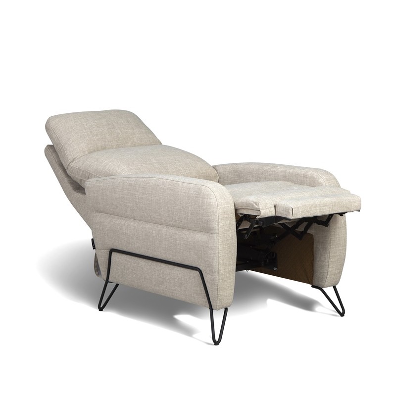 Sillón relax modelo MOIXENT con apertura manual, el sillón se reclina mediante la fuerza corporal del propio usuario. Dispone de 2 posiciones de reclinamiento, reposo parcial a medio recorrido con los pies elevados y reposo absoluto con todo el respaldo abatido.