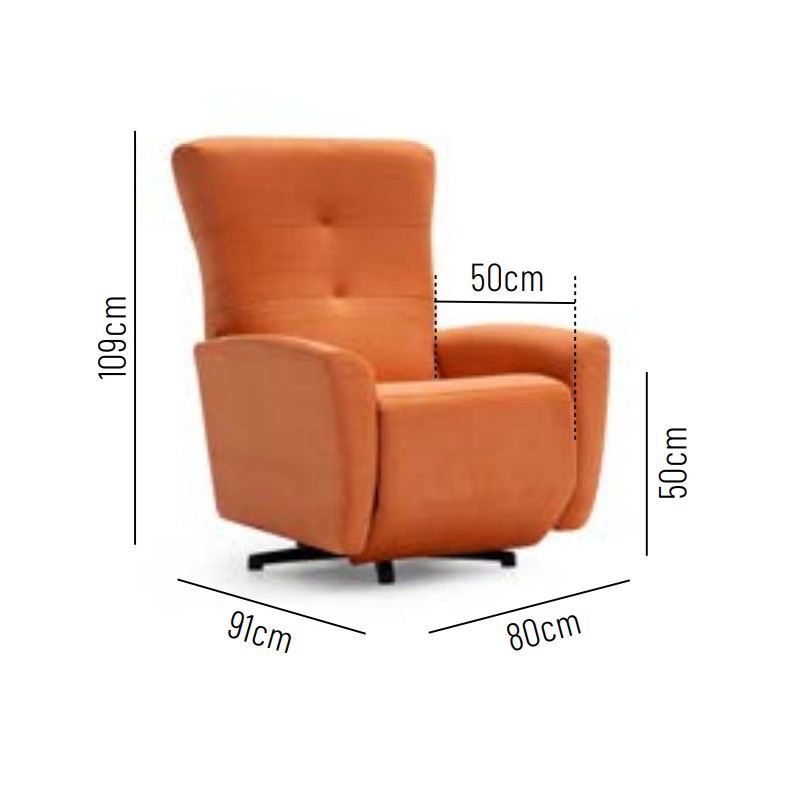 Con apertura manual de serie u opción de apertura motorizada mediante botonera integrada en el brazo. La apertura motorizada permite subir los piés y reclinar el respaldo sin esfuerzo desde la botonera integrada. Asiento y reposapiés con manta acolchada, desenfundable.