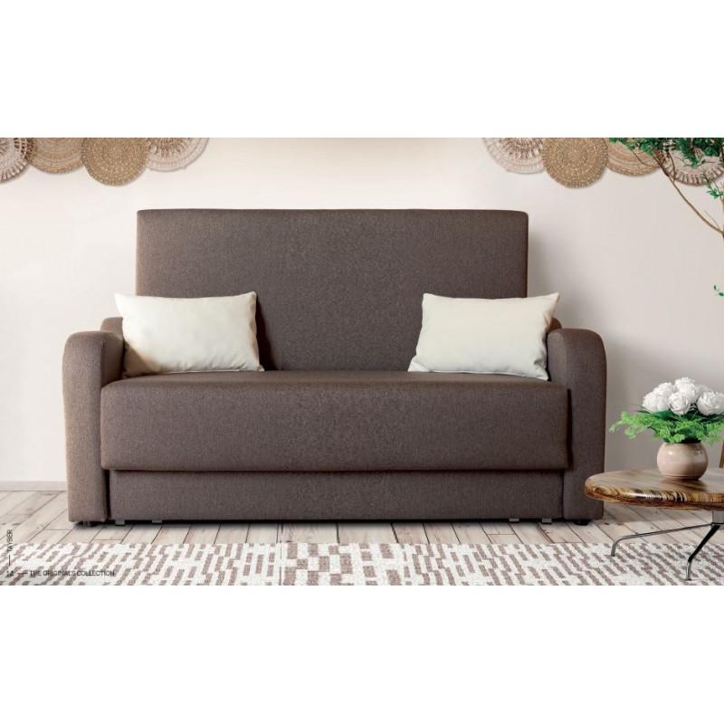 Sofá convertible modelo Trinidad-150 PLUS, con cama de 150x190 cm. Dos cojines de decoración incluidos de 50x30 cm.