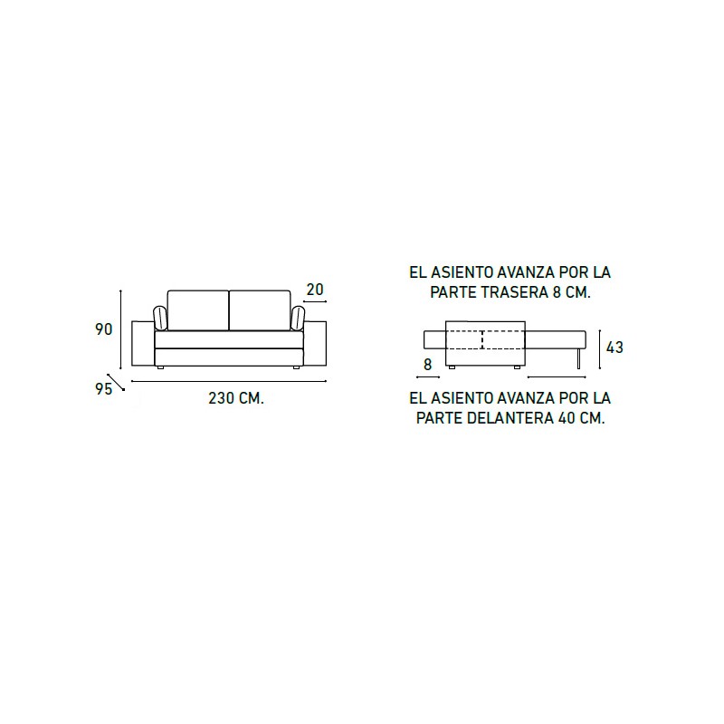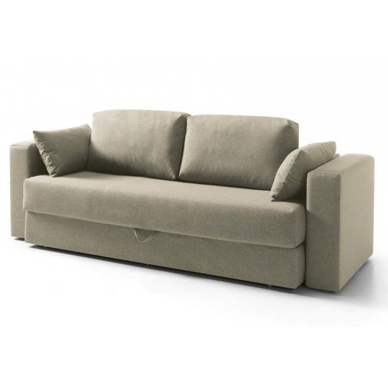 Sofá cama extensible modelo Elix convertible fácilmente en cama de matrimonio de 140x190 cm. En unos sencillos pasos convertimos este sofá en una cómoda cama para nuestros invitados. Dispone de 2 huecos con arcón debajo del asiento para guardar los respaldos del sofá cuando abrimos la cama. Incluye 2 cojines de decoración que pueden usarse de almohadas.