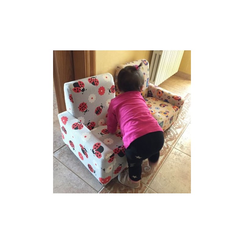 Pensado para los más pequeños de la casa, ideal para niños y niñas de entre 1 y 5 años. Disponible en diferentes tapizados a elegir, todos ellos con tratamiento anti-manchas, repelente de líquidos.