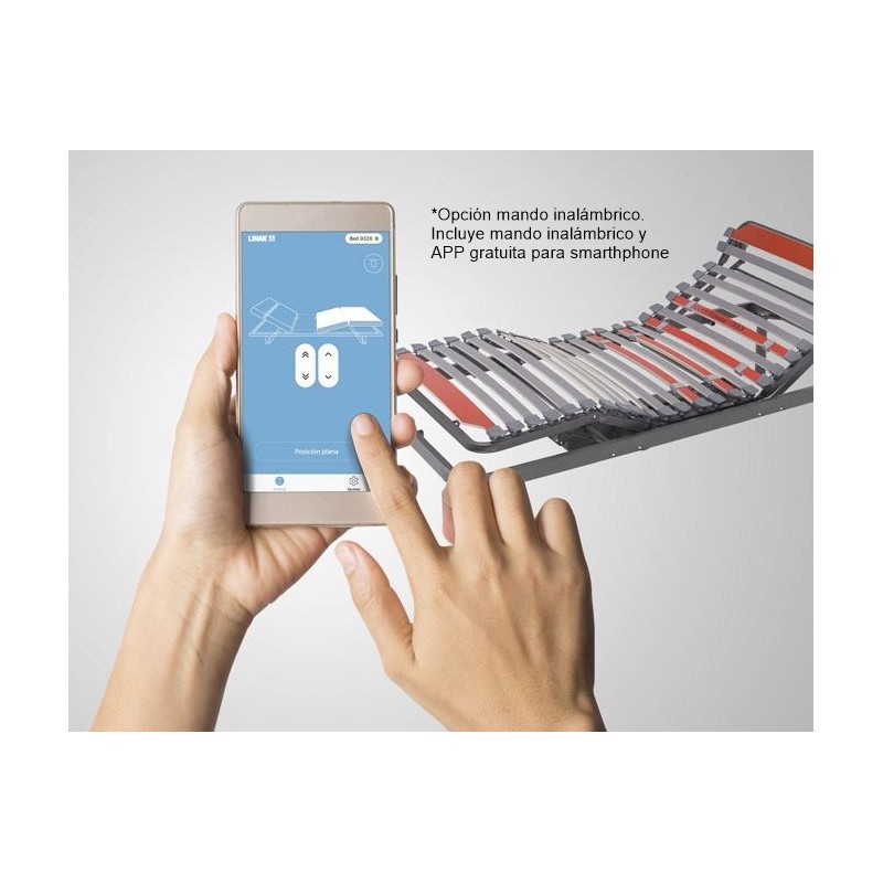 - Mando por cable. Infinidad de ajustes de cabecera y piecera simultaneamente o por separado, independientemente el uno del otro. Opcional mando inalámbrico compatible con app para smartphone.