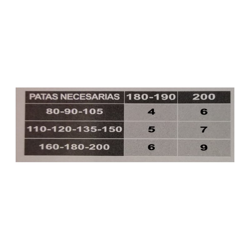 | Medidas aprox. | Anchos de 67, 75, 80, 90, 105, 135, 150 y 160 cm. Largos de 180, 190 y 200 cm. |