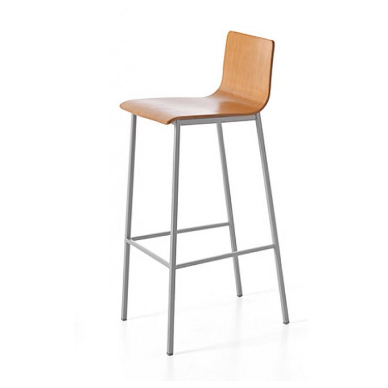 Taburete medio de cocina modelo Cobalto 60R, con chasis metálico de alta calidad en color plata o blanco, asiento y respaldo fabricados en contrachapado de madera (cerezo o natural) y lacados texturizados (aluminio o blanco).